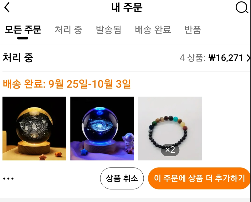저 역시도 우주 크리스탈 볼 2가지와 우주 행성 팔찌 4가지 상품을 모두 사는데 단돈 만6천원 들었네요.